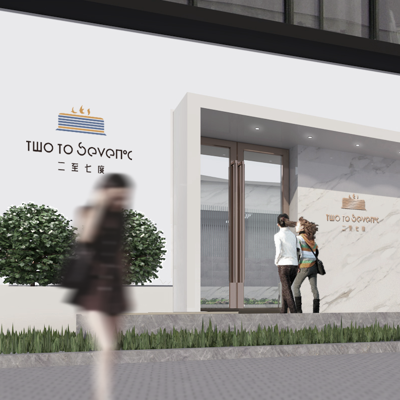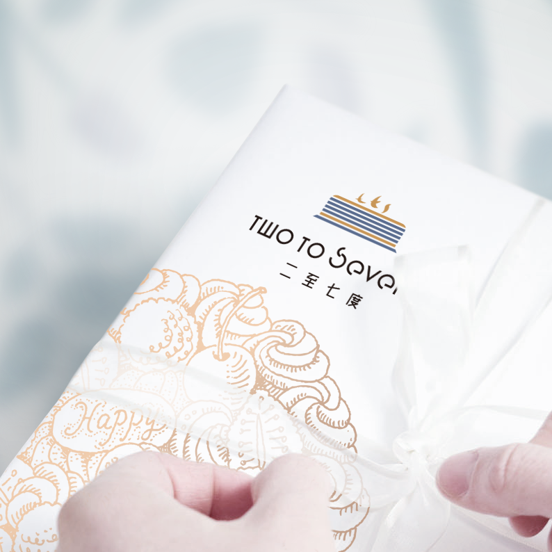 二至七度TWO TO SEVEN℃品牌標(biāo)志設(shè)計以抽象的線條構(gòu)成蛋糕形態(tài),體現(xiàn)行業(yè)之屬性。右下至上七根線條,如同溫度計的刻度,第二條與第七條為金色,是對蛋糕行業(yè)二至七度黃金溫度的視覺呈現(xiàn)。上方品牌首字母TTS變形為搖曳的燭火造型,同時字母TT又是一對自由飛翔的小鳥,寓意美好浪漫自由的生活。散發(fā)現(xiàn)代視覺設(shè)計美感,彰顯獨有的品牌氣質(zhì)。