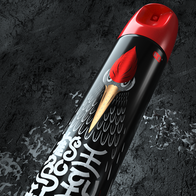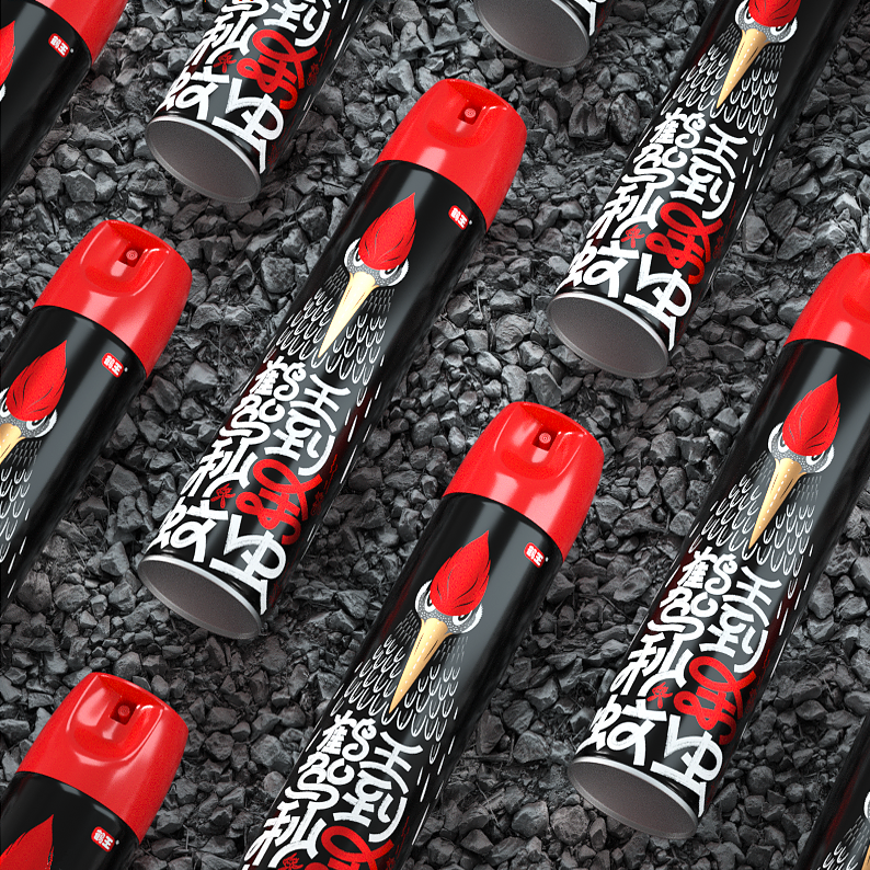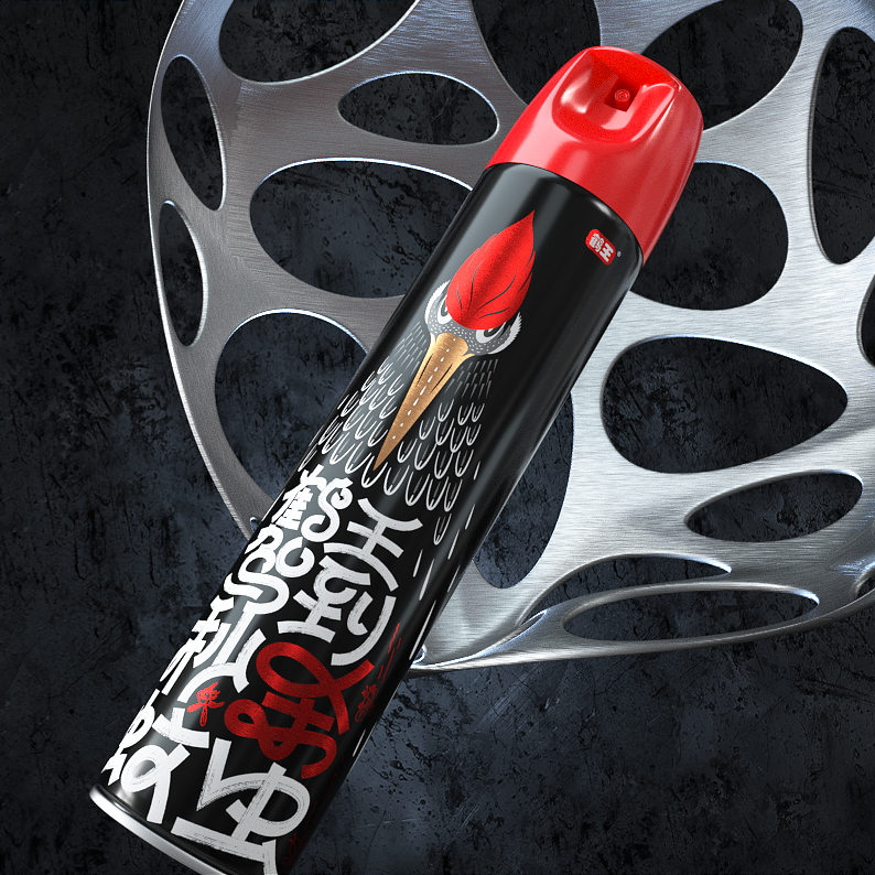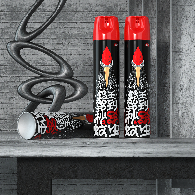 包裝創(chuàng)意設(shè)計,字體設(shè)計涂鴉風(fēng)格,黑白紅色彩對比視覺酷炫,顏值爆表,在殺蟲氣霧劑包裝中脫穎而出。