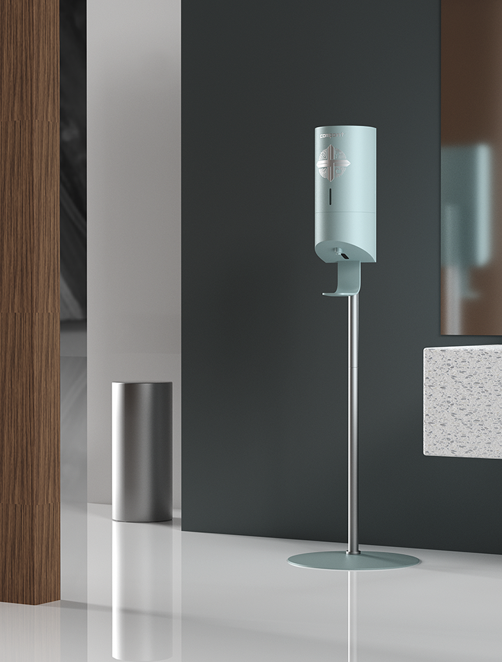 康派特洗手液機外觀設(shè)計方圓結(jié)合,以極簡風(fēng)格定義產(chǎn)品氣質(zhì)內(nèi)涵,簡中有品,氣質(zhì)優(yōu)雅,散發(fā)現(xiàn)代工業(yè)設(shè)計之美。立式造型支架配合伸縮支架可以適應(yīng)不同身高人群,同時輕便的自身重量,便于隨時移動到所需放置的位置,尤其是解決了公共空間大眾洗手時對于防疫的需求。