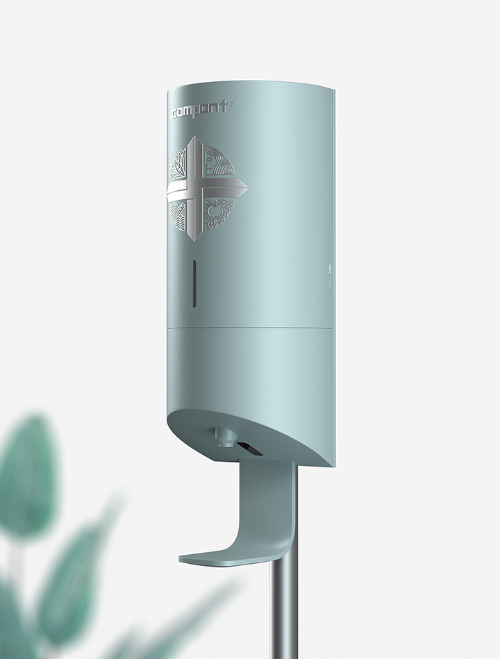 The appearance design of Compont hand sanitizer is simple and elegant in temperament, and exudes the beauty of modern industrial design. The vertical modeling support combined with the telescopic bracket can adapt to different height groups, at the same time, it is easy to move to the required position at any time, especially to solve the public demand for epidemic prevention when washing hands in public space.