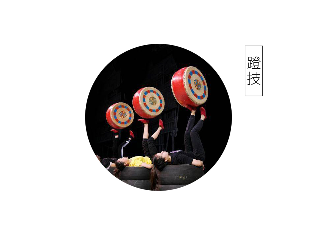 創(chuàng)意靈感源自中國傳統(tǒng)雜技藝術(shù)“蹬技”,是一種來自演員高超腿腳功夫,仰躺蹬物的表演形式,見下圖: