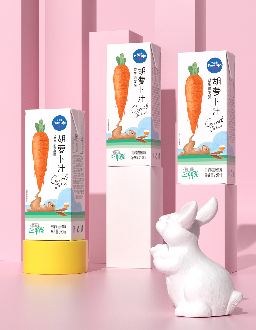 Carrot is the favorite food of little rabbit. It is a very good idea to use it as a spokesperson for carrot juice. This leads to the benefit appeal that the product can bring, supplement balanced nutrition, make the body full of strength and healthier.