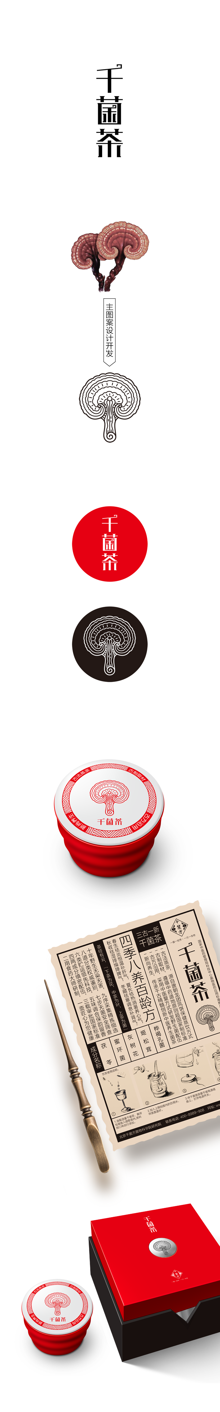 靈芝采天地之精華,自古被尊為百草之王。千菌茶以靈芝為主原料,是養(yǎng)生保健之極品。如何定位千菌茶的調(diào)性,千菌方主要領(lǐng)導(dǎo)和博創(chuàng)設(shè)計(jì)前期進(jìn)行了深入溝通和研討,對產(chǎn)品風(fēng)格定位及產(chǎn)品最終消費(fèi)人群心理需求逐一論證,在品牌色系視覺傳達(dá)上,我們針對品牌進(jìn)行了科學(xué)理性的分析,千菌方團(tuán)隊(duì)給予了高度肯定。抽絲剝繭,分析本質(zhì),一切趨于清晰明朗。在確定了設(shè)計(jì)方向后,博創(chuàng)設(shè)計(jì)正式進(jìn)入創(chuàng)作階段。以大眾所熟知的靈芝形態(tài)進(jìn)行包裝符號的創(chuàng)作提煉,以簡約的風(fēng)格為視覺定位,沉穩(wěn)中有時(shí)尚的氣息。紅黑搭配,個(gè)性不凡,摒棄保健品市場過于傳統(tǒng)陳舊的風(fēng)格,最終作品與千菌茶的高端保健品定位及終端人群定位相吻合。