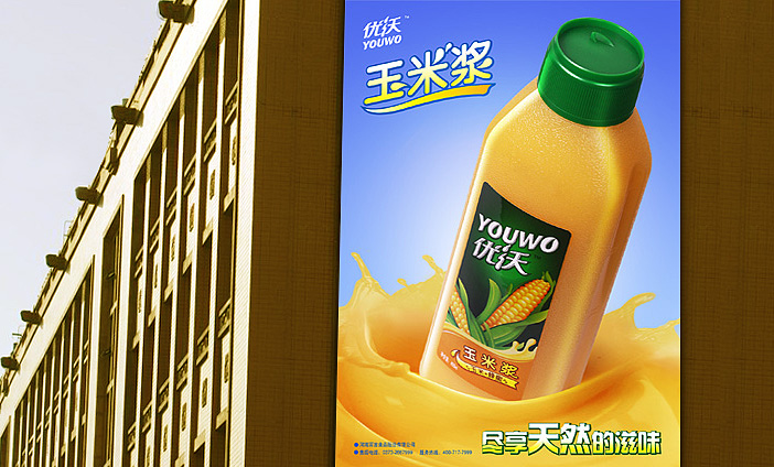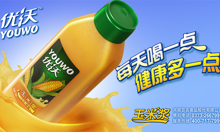 優(yōu)沃玉米漿,具有天然原料,均衡營養(yǎng)的特性,產(chǎn)品上市之初,博創(chuàng)創(chuàng)意設(shè)計(jì)了產(chǎn)品系列宣傳畫面。